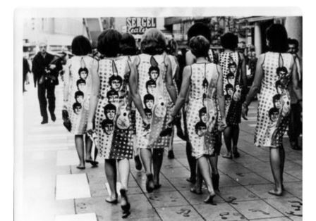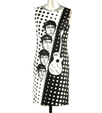 How do you roll up the Vietnam War, the civil rights marches, the youthful and modern presidency of John F. Kennedy, the voice of Martin Luther King, the Greensboro lunch counter sit-ins, the landing on the moon, Twiggy, the liberation of women, and above all the magic of the Beatles into one thing? For me the answer lies in the Museum of London in a simple short black and white polka-dotted mini dress with a diagonal line across it; the faces of the Beatles on one side, and a guitar on the other.