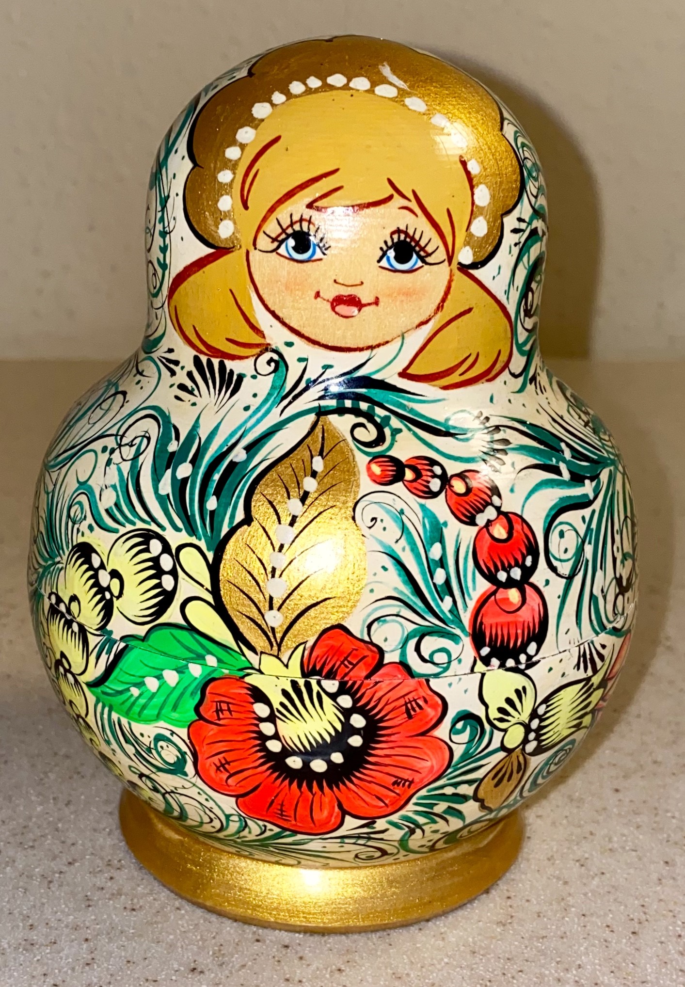 The dolls were named after the Russian name “Matryona,” which was a very popular name in Russia in the late 1800s. The name is derived from the Latin word “mater” for mother, and since the motherly name fit the dolls perfectly and the name stuck. The most number of dolls in one set is 48, and it was made in 1913 in the city of Semyonov. My set has 10, as does my sister’s set which is actually Czech not Russian.