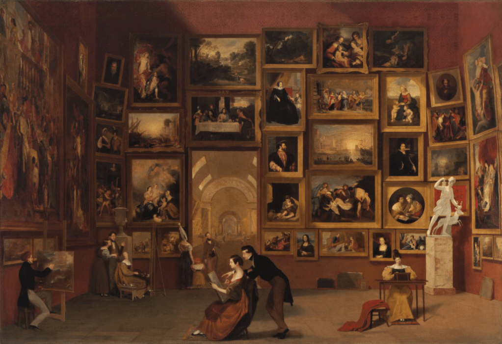 For me the most fascinating kunstkammer painting is Samuel Morse’s (of the telegraph and Morse code fame), Gallery of the Louvre which he painted from 1831 to 1833. Before he connected the two sides of the Atlantic with a telegraphic message, Morse tried to do so with this monumental painting. Morse started his career as a painter and was a well-known portrait artist when he painted this work, primarily for the cultural and artistic education of the American public. Morse and his great friend and author James Fenimore Cooper came up with the idea of this painting to firstly, record the world’s greatest art, and secondly, to introduce young Americans to refined European art.