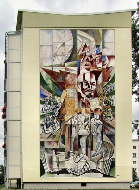 The mural was made by Erich Enge in 1970-71 and can be found on the side facade of a housing block building inthe ex-East German city. It is titled “Er rührte an den schlaf der welt,” which translates to “He stirred the world’s slumber.” The mural is dedicated to Lenin and the impact he had on different aspects of Socialist life are depicted in the mural.