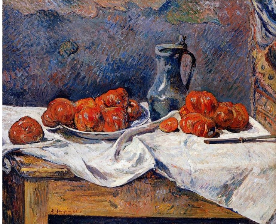 Paul Gauguin (1848 – 1903), the French Post-Impressionist artist is most well known for the paintings he made while living in Tahiti. Gauguin was a friend of Camille Pissaro, Paul Cezanne, Degas, and even Van Gogh – with Cezanne having the biggest influence on him. He collected artworks of both Degas and Cezanne, many of which appear in the background of his works.