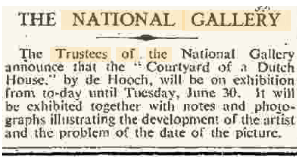 In response, the trustees decided to show one picture every three weeks instead of one a week because they, “felt that many people could not spare time to visit the gallery so often and might be disappointed at missing a favorite picture.”