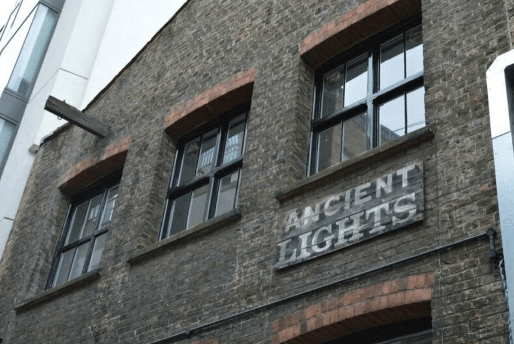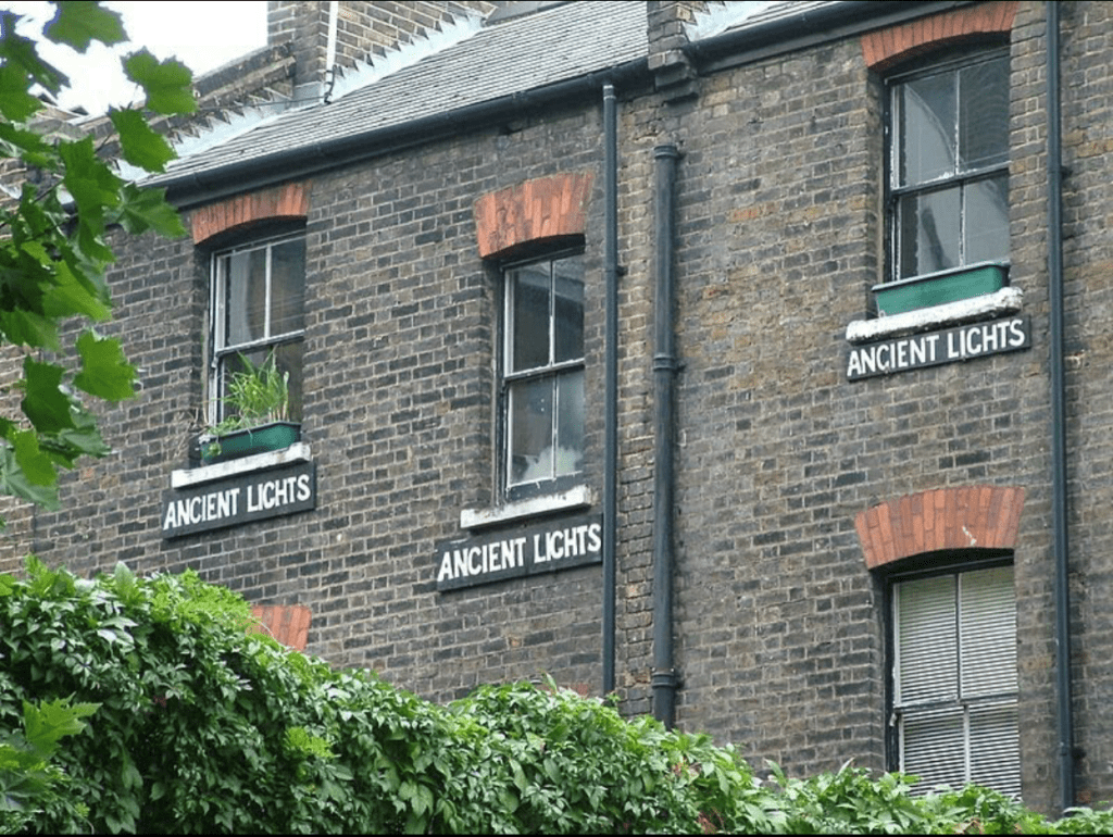 In some of the older neighborhoods in London, windows bear an “Ancient Lights” sign next to them – which indicates, and lets the neighbors know, that they are protected by the Ancient Lights law.